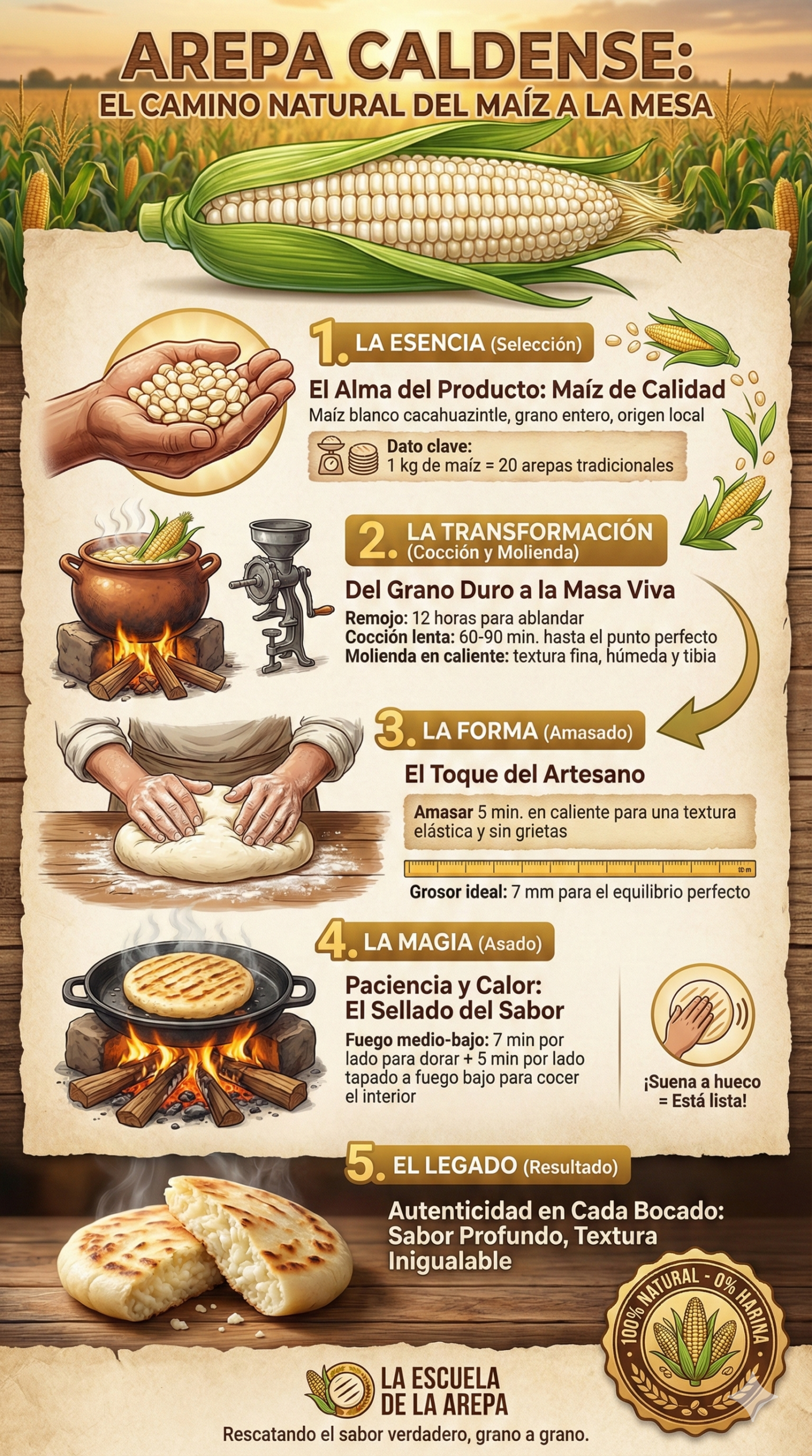 El secreto está en cocinar el maíz entero, lavarlo bien y molerlo. Esto da una textura que ninguna harina de bolsa puede imitar. Si quieres vender calidad en Manizales, este es el camino.